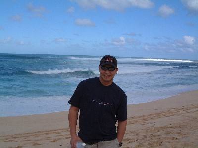 Greg checks out the waves at sunset beach. The waves aren't big enough for him to surf... yeah right