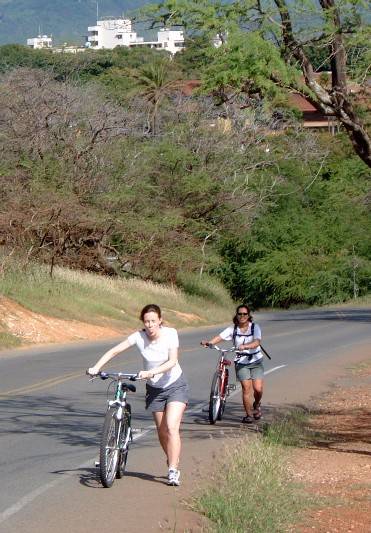 Claire and Sandra take a break from biking
