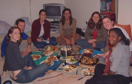 Having a yummy homemade dinner with Sally and friends
