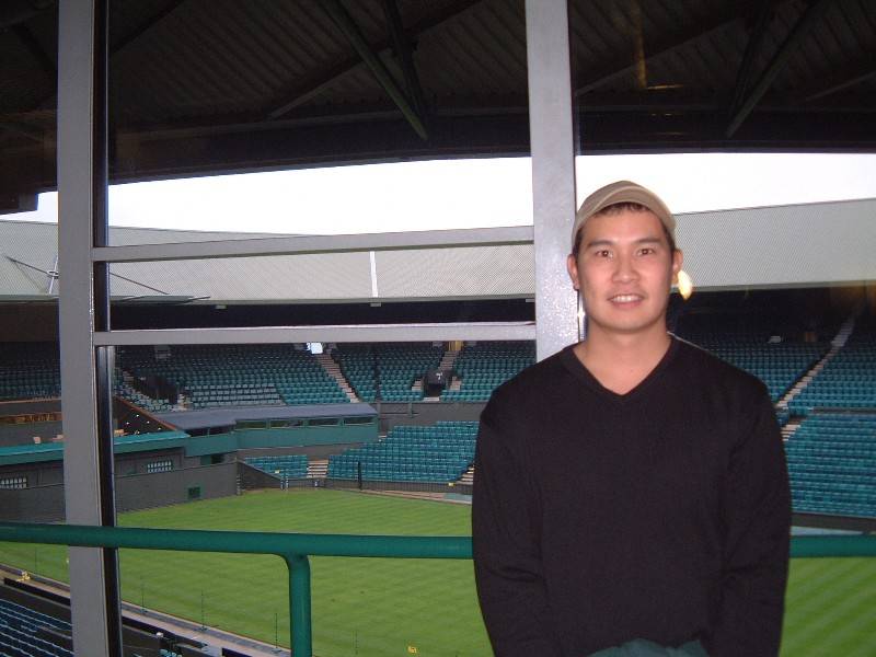 Greg at The All England Tennis and Croquet Club (Wimbledon). It's not as big as we expected.