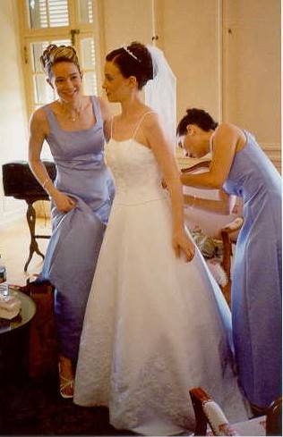 Now that I was dressed a few people stopped in to see me, including my five year old cousin Allison, who thought I looked "just like a princess". My Mom had been doing pretty well up till this point but when my grandmothers stopped in to see "Claire Coffey for the last time", she lost it. The bridesmaids decided that we needed some more music to lighten the situation, so in my final minutes as Claire Coffey I danced around to The Fugees "Killing Me Softly" with all of my best friends.
